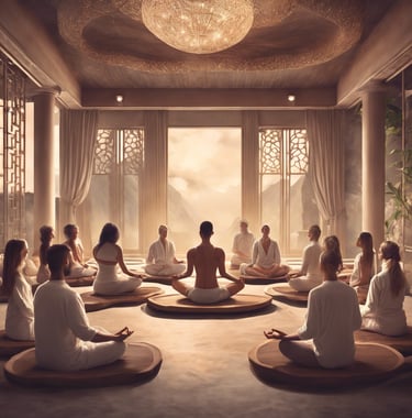 Meditación con escaneo corporal, meditación sentada, movimientos conscientes, caminar consciente, comer consciente, baño consciente en el balneario, paseos conscientes en la naturaleza, espacios de silencio, espacios de descanso...